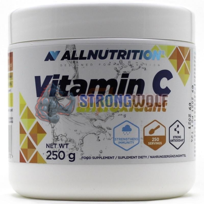 Пищевая добавка от компании All Nutrition содержит витамин С в форме аскорбиновой кислоты, в порошке мссой 250 гр в чистом виде, без наполнителей и ароматизаторов.
