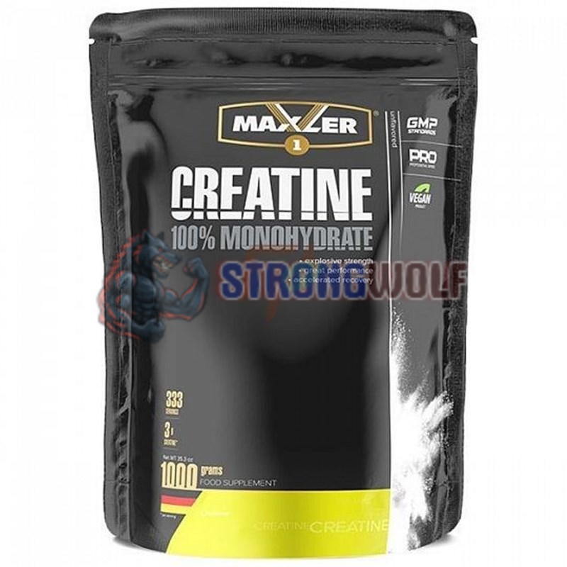 Пищевая добавка от компании Макслер содержит порошок 100% моногидрат креатина в экономичной упаковке: 1000 гр.